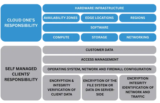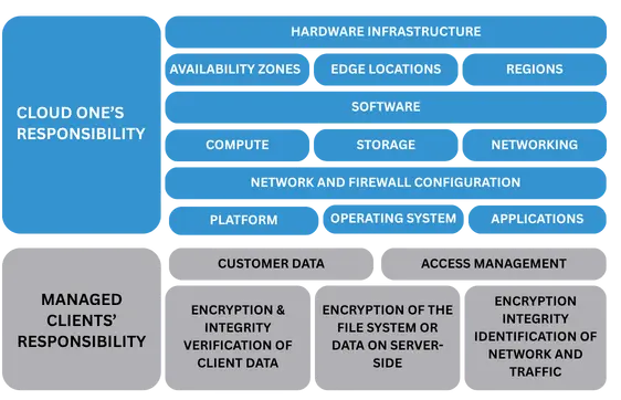 Security and Compliance is a shared responsibility between Cloud One and the customer. This policy outlines the responsibilities of both Cloud One and our clients in safeguarding data hosted on our cloud platform.
